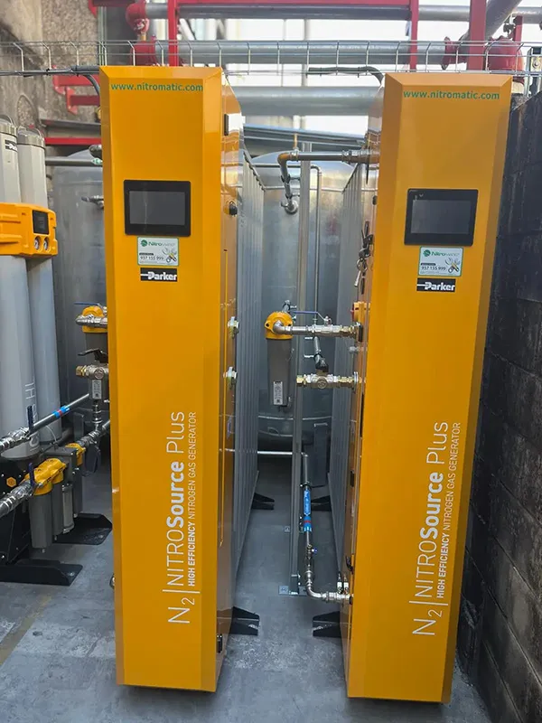En Nitromatic diseñamos soluciones de generación de nitrógeno PSA a medida, adaptadas a los requisitos técnicos de cada proceso productivo. Nuestros sistemas permiten reducir la dependencia de suministros externos, minimizar riesgos operativos y optimizar los costes asociados al uso de nitrógeno, garantizando al mismo tiempo fiabilidad, eficiencia y control del proceso.